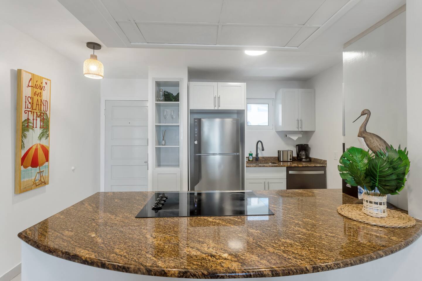 Guests will have exclusive and private access to the entire condo unit. In addition, you have access to the building's shared amenities, designed to enhance your island experience. - **Entire Private Condo:** Your own personal space to relax and unwind. - **Direct Beach Access:** Follow a secret boardwalk that leads you directly to a secluded stretch of Maho Beach. - **Rooftop Lookout:** Take in panoramic island and ocean views from the building's 4th-floor rooftop lookout. - **Garden Areas:** Enjoy a quiet stroll through the property's lush garden space