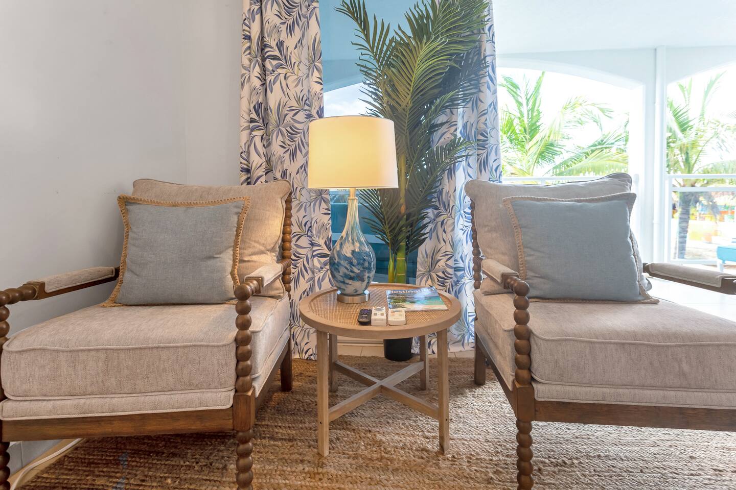Welcome to Maho Beach House, your private beachfront retreat in the heart of Sint Maarten's vibrant Maho Village. This modern, beautifully decorated condo offers an exclusive escape with unparalleled sunset views right from your suite. Step out onto your furnished balcony to overlook the turquoise water and pristine sand. Inside, the space is bright and naturally lit, featuring a comfortable living area, a dedicated workspace for any business needs, and a full kitchen thoughtfully appointed for you to prepare and enjoy meals at your leisure. Key Features: - Private furnished balcony with direct ocean and sunset views. - Comfortable living area with a Smart TV. - Fully equipped kitchen for all your culinary needs. - Spacious bedroom with direct access to the balcony. - Dedicated workspace. - Personal safe for valuables.