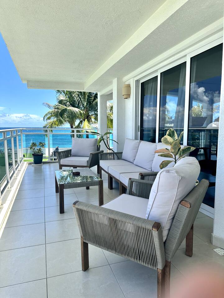 Maho Beach House: Your Oasis in the Heart of Maho Village Discover your serene oceanfront retreat in this luxurious 1-bedroom private residence. While located next to The Morgan Resort, this is a distinct and private building, offering a peaceful escape with stunning panoramic sunset views over the turquoise sea. The interior is a bright and airy open-plan living space, featuring a stylish living room that opens directly onto a furnished balcony—the perfect spot for your morning coffee or evening cocktails. The serene bedroom also boasts its own beautiful ocean view, allowing you to wake up to the sights and sounds of the beach. For your convenience, the suite is thoughtfully appointed with modern amenities, including: * A full kitchen with stainless steel appliances * A dedicated workspace with an inspiring beach view, ideal for remote work * Smart TV for your entertainment * Smart locks for keyless entry * A personal safe for your valuables