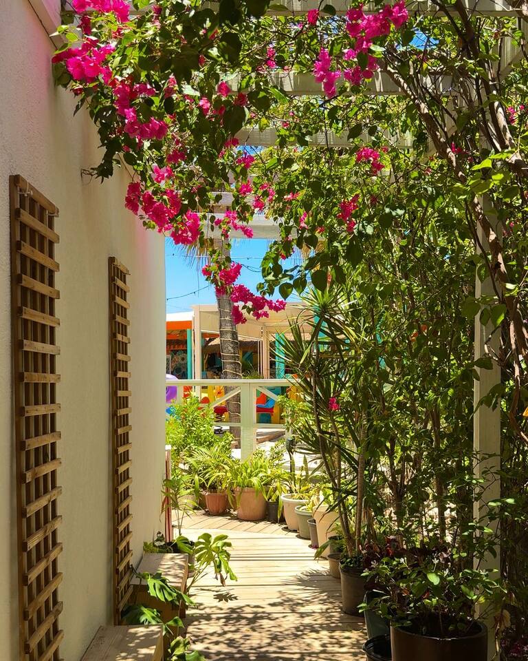 As our guest, you will have full private access to the entire apartment. You will also enjoy exclusive access to several unique amenities within the private Maho Beach House property: * A secret boardwalk providing direct beach access to a secluded part of Maho Beach. * Lush garden areas for a peaceful stroll. * A rooftop lookout on the 4th floor with panoramic views. For an enhanced resort experience, day passes for the neighboring Morgan Resort are available for purchase directly from the resort for a fee of $60 per person per day. This pass grants you access to: * Resort Pool & Jacuzzi * Fitness Center