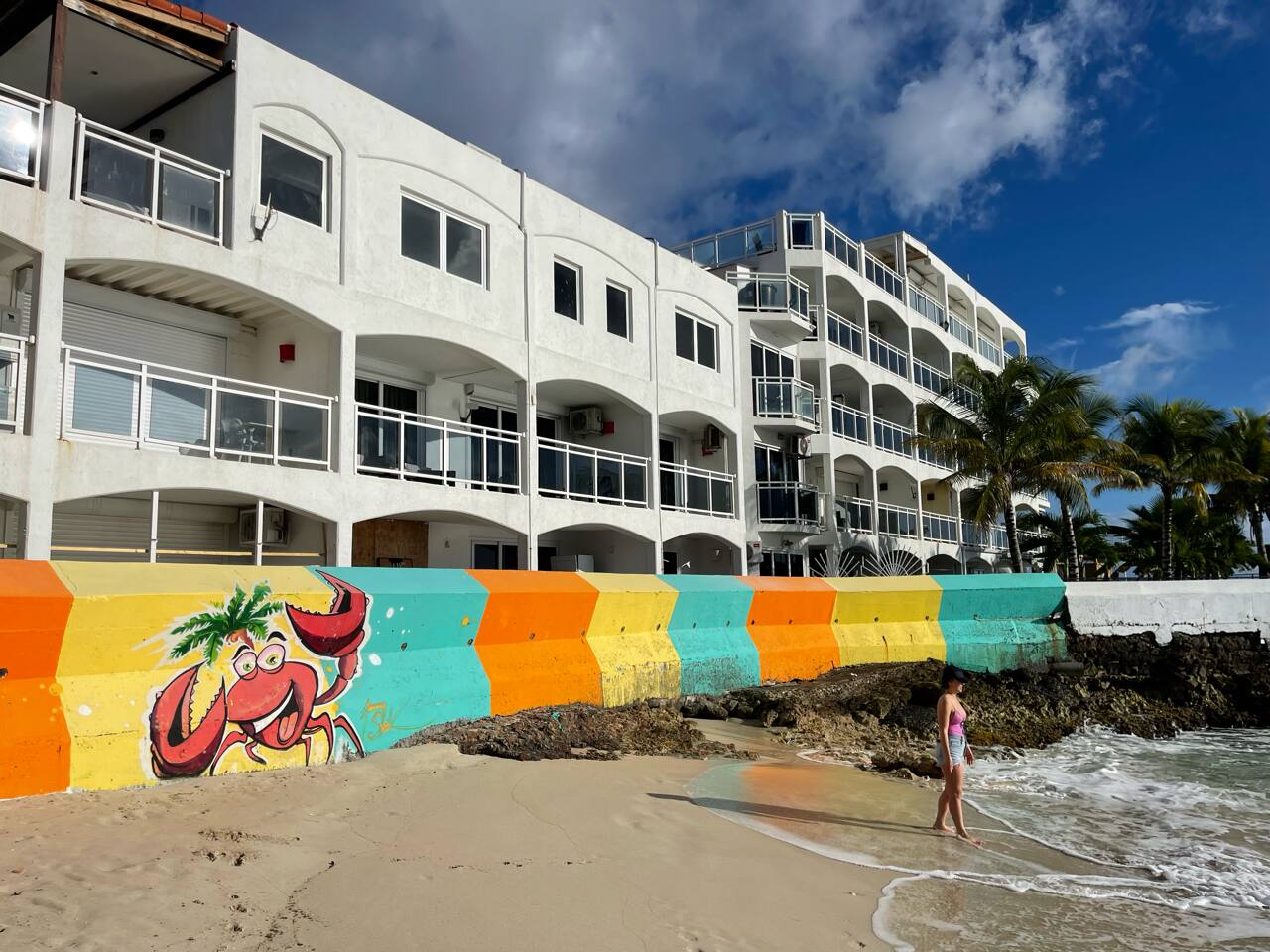 The private condo is located in The Morgan Resort. On the Resort grounds are Sunset Beach Bar, Dunes Casino, Oh Paris French Bakery, Mykonos Night Club, Blue Spa, Salt Restaurant, and Sand Bar. A short walk along the beach and you will find the Maho Market, Casino Royale, a pharmacy, shops, and more. The infamous Maho "Airplane" beach is a minute walk away. Take a photo mere feet under an airplane landing or get jet-blasted during take-off. Whichever you choose, it's sure to be a memorable experience.