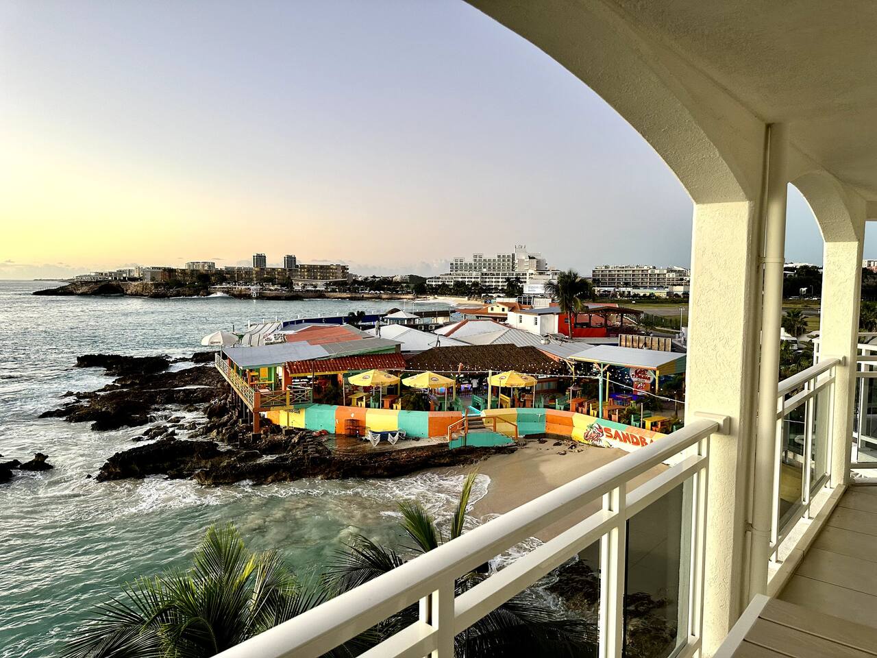 As our guest, you will have full private access to the entire suite, including the wrap-around balcony. You can also enjoy the unique shared amenities within the Maho Beach House property, including: * A secret boardwalk providing direct beach access to a secluded part of Maho Beach. * Lush garden areas. * A panoramic rooftop lookout on the 4th floor. For an elevated experience, day passes are available for purchase to access the neighboring Morgan Resort's exclusive amenities, including their luxurious pool and hot tub. Please see the 'Notes' section for more details.